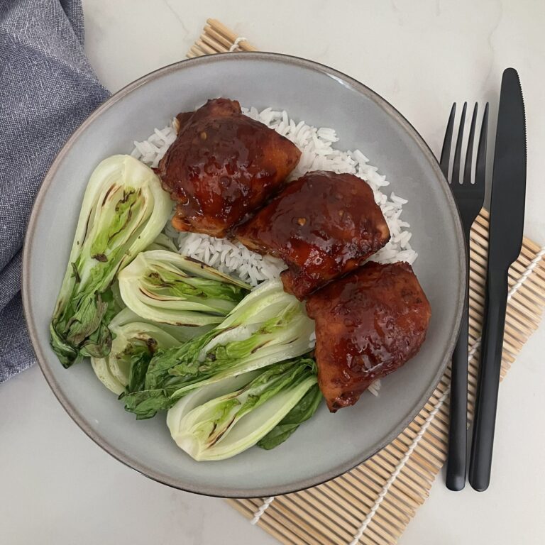 Sticky Asian Glazed Chicken Thighs & Charred Bok Choy