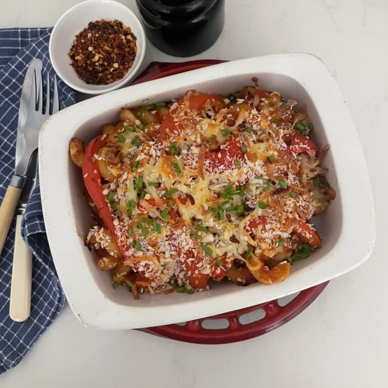 Roasted Pepper & Mozzarella Cavatappi Bake