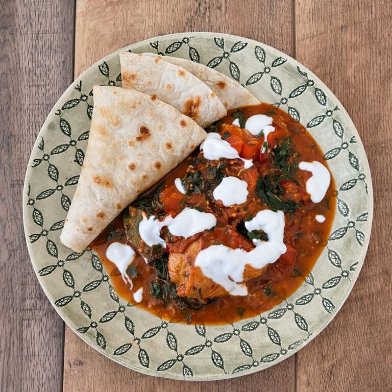 Afghan Spiced Eggplant with Garlic Yoghurt & Roti