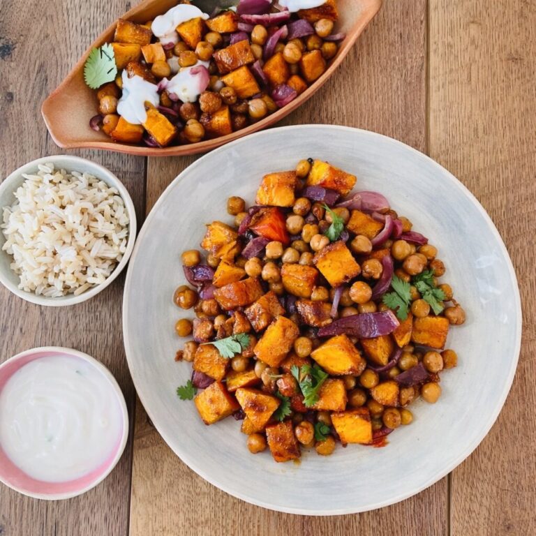 Roasted Butternut and Chickpeas with Hot Honey