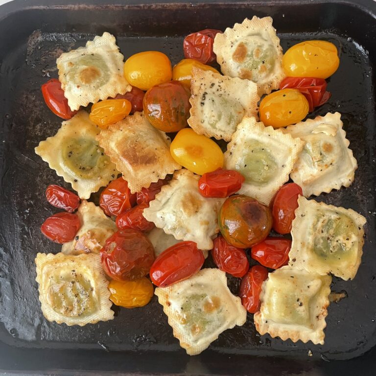 Crispy Baked Ravioli with Roasted Cherry Tomatoes