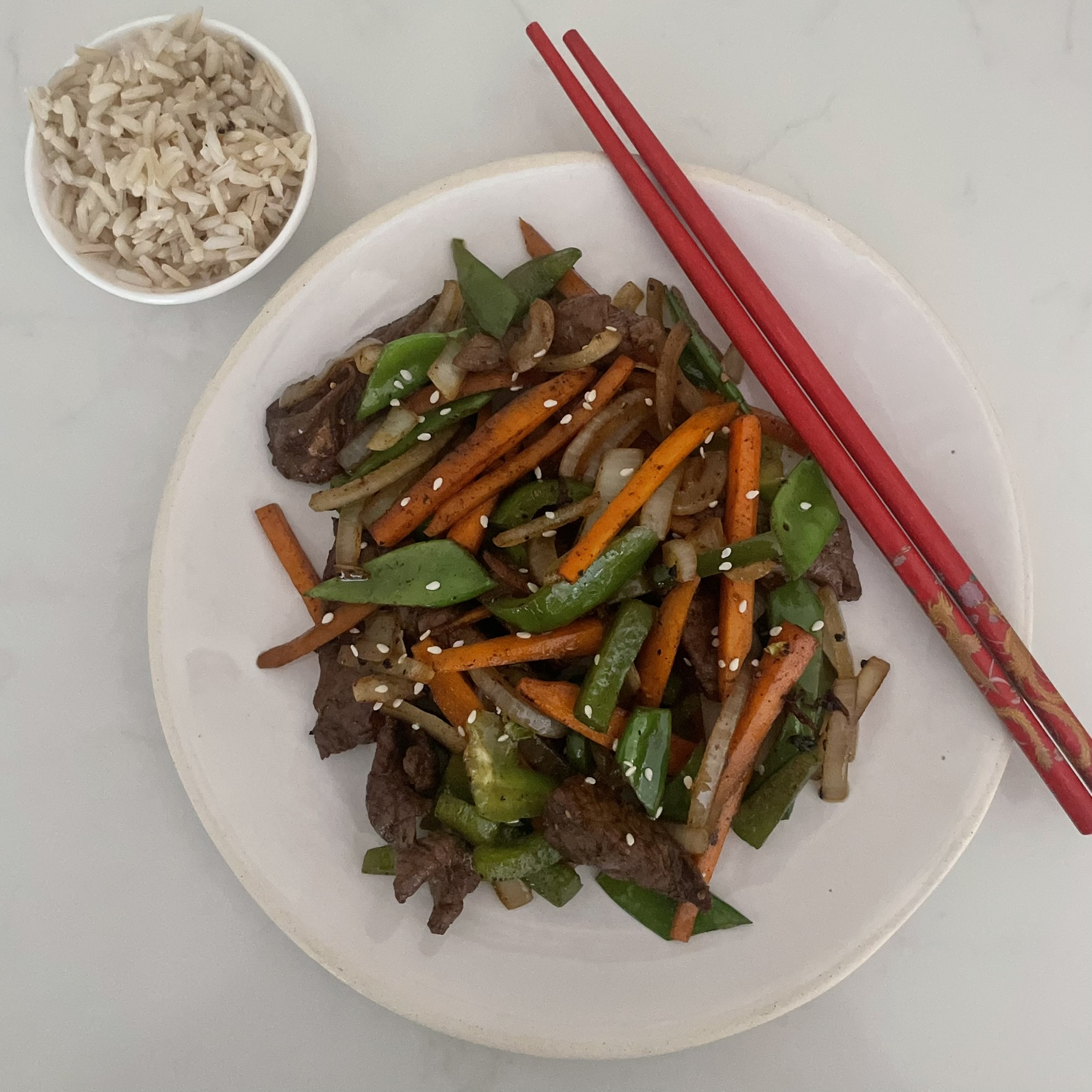 Beef in Black Bean Sauce on Brown Rice