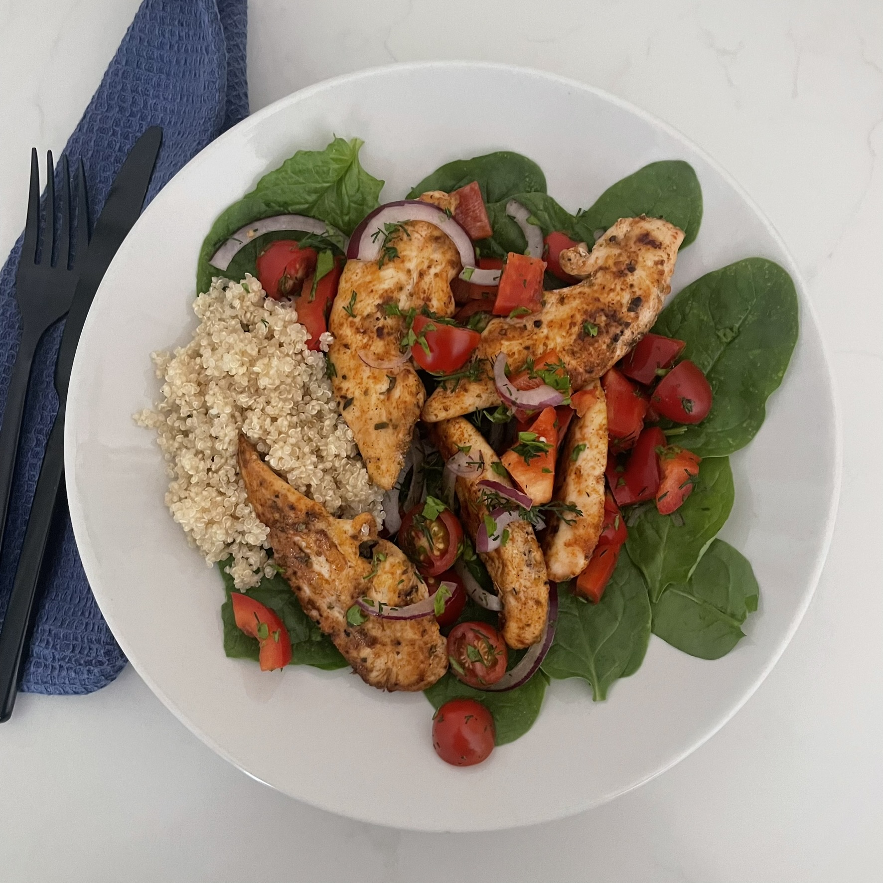 Mediterranean Chicken, Garden Salad & Quinoa