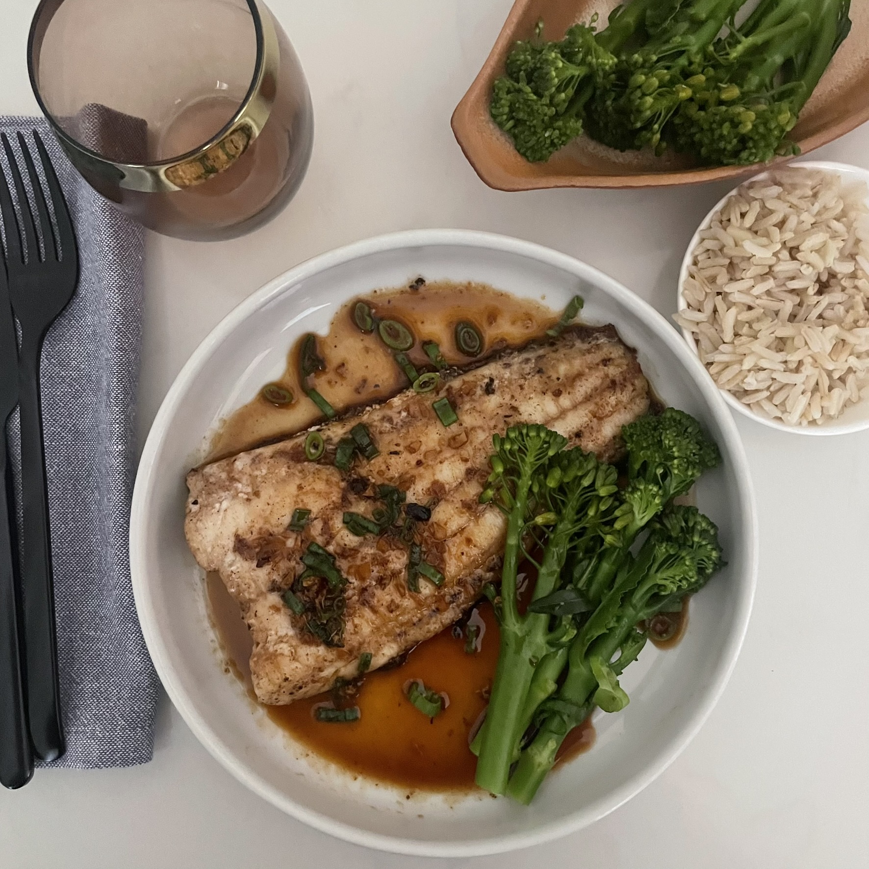 Soy-Glazed Five-Spice Fish with Brown Rice
